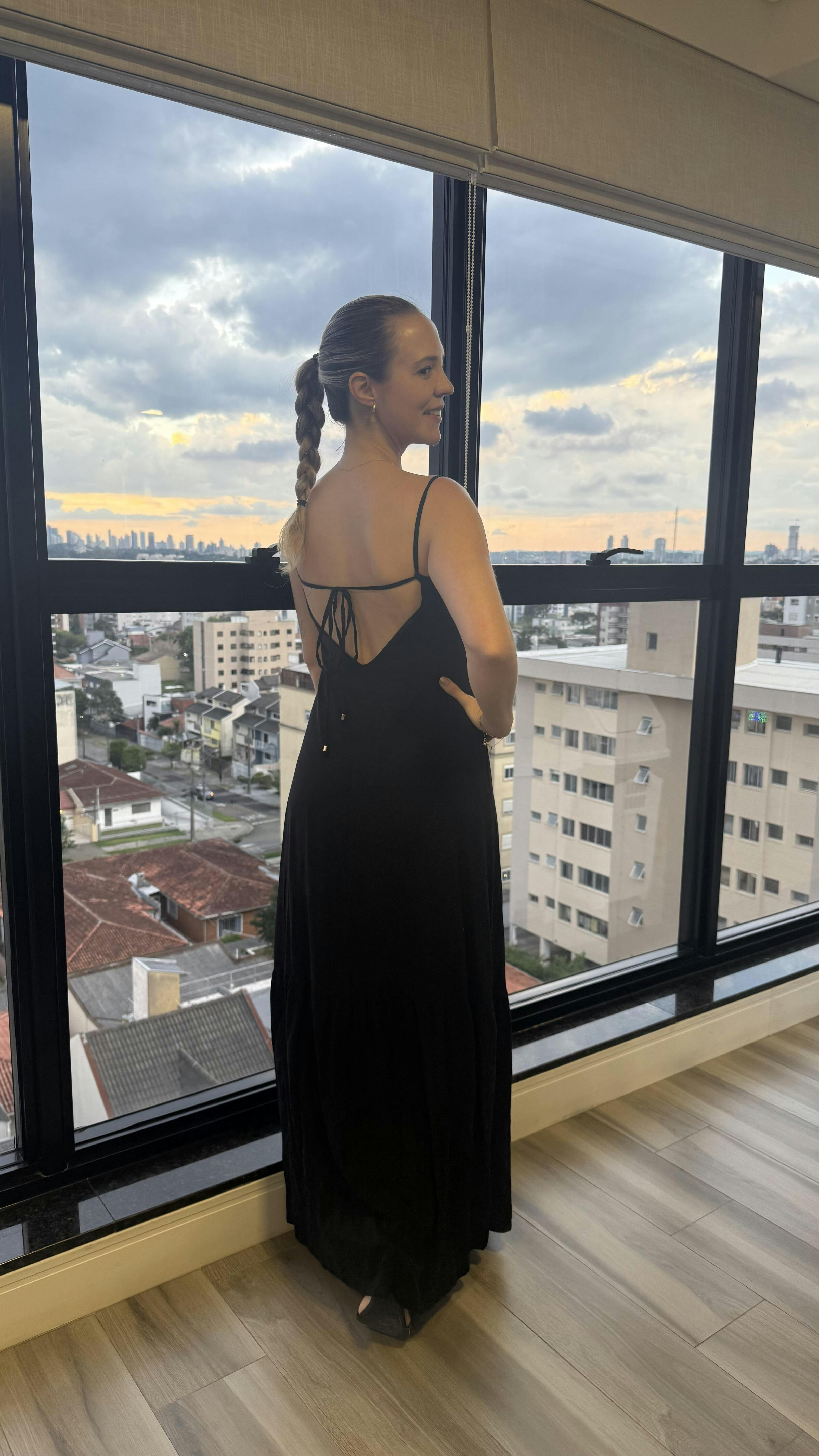 O Vestido Anita não é só um vestido longo, é um vestido longo criado para mulheres altas de até 1,85m que querem um vestido chegue até o chão, com movimento e leveza sem virar midi por acidente.